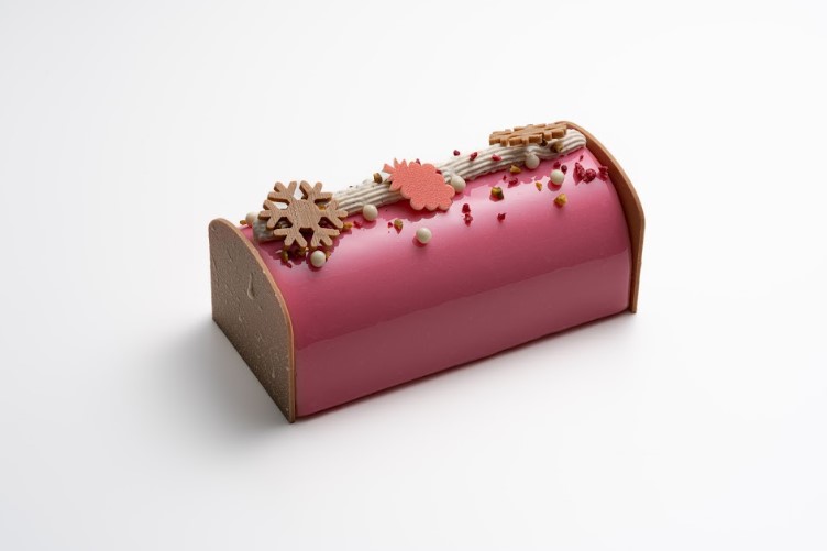 – Déscriptif : Crème glacée framboise renfermant une dacquoise moelleuse à la pistache et un cœur de nougat glacé au miel de forêt et éclats de framboises, amandes et pistaches caramélisées et brisures de nougat.