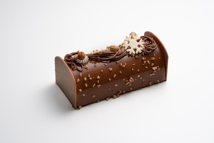 Décor : Chocolat blanc Dulcey (beurre de cacao, sucre, LAIT entier en poudre, LAIT écrémé en poudre, lactoserum (LAIT), beurre (LAIT), émulsifiant: lécithine de Tournesol, extrait naturel de vanille).